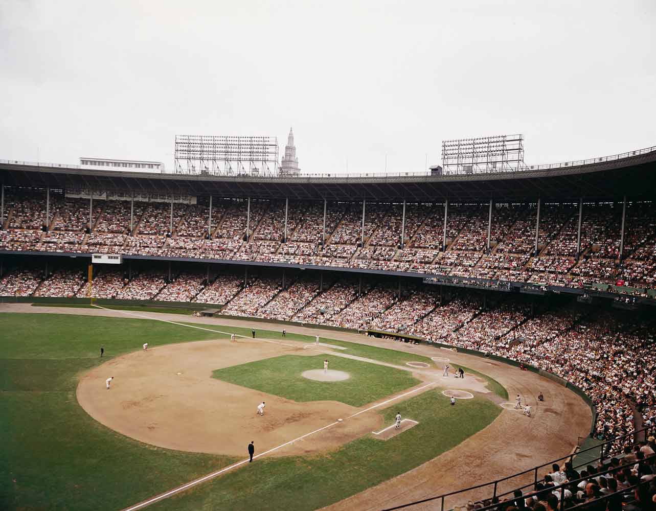 August 20, 1961 Cleveland Municipal Stadium. First game of a Cleveland Indian/NY Yankee doubleheader. Dick Stigman pitching in relief of Jim Perry to Roger Maris with Mickey Mantle on deck. Final score Yankees 6, Cleveland 0. In this game Mantle hit home run number 46 in the 1st inning and Maris hit number 49 in the 3rd.